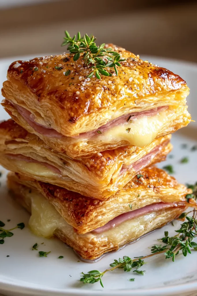 These crispy ham and cheese puff pastry stacks combine flaky layers with melty cheesy goodness and savory ham. Perfect for brunch or a light dinner, they’ll impress friends and family alike!